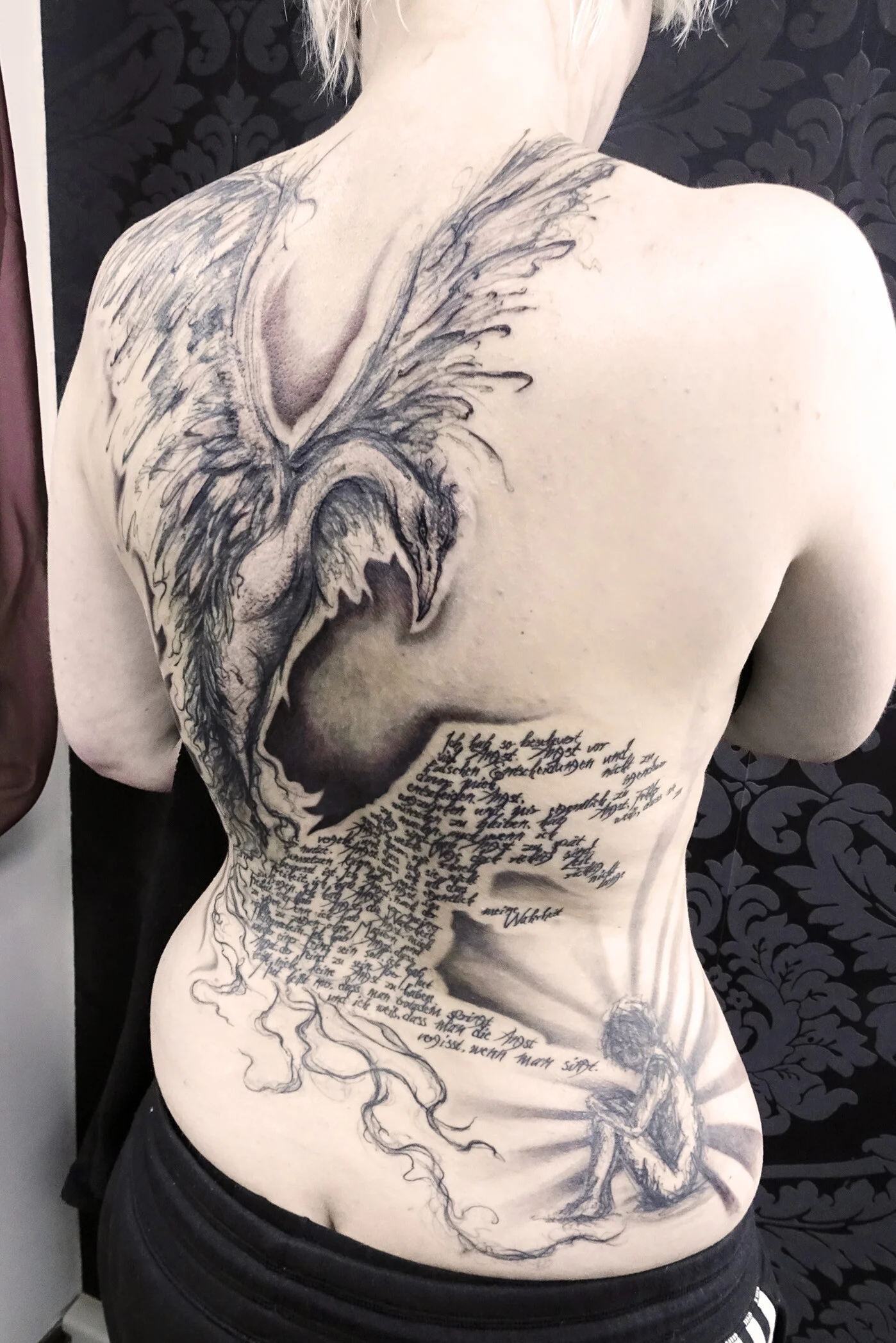 Die hier zu sehenden Tattoos haben für ihre Träger eine große, tiefgründige Bedeutung, die sich manchmal erst bei genauem Hinsehen, manchmal auch gar nicht für den Betrachter erschliest. Sie bedeuten mir viel, weil sie beweisen, dass Tattoos heilsam sein können. Für die Etablierung dieser Heilkunst als großes Ganzes möchte ich kämpfen und du kannst mich hierbei unterstützen.